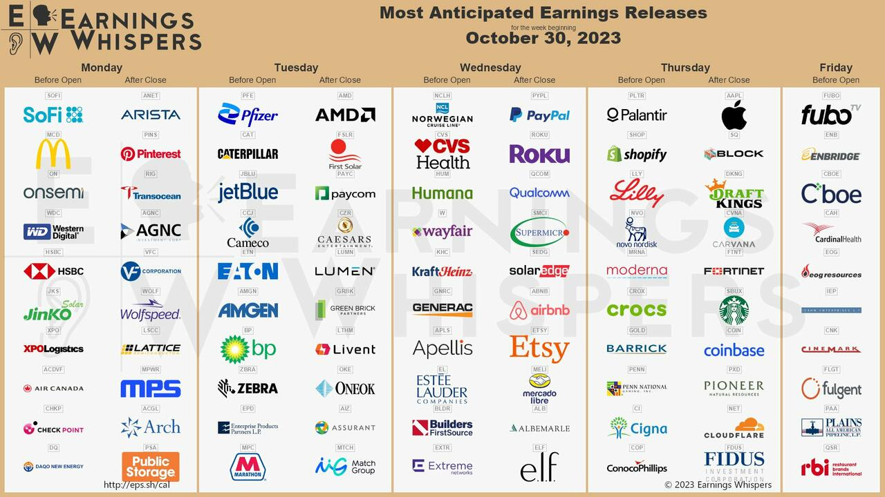 23% of S&P 500 companies will report earnings this week with notable names such as: Apple, Qualcomm, PayPal, AMD, Roku, First Solar, Pfizer, Caterpillar…