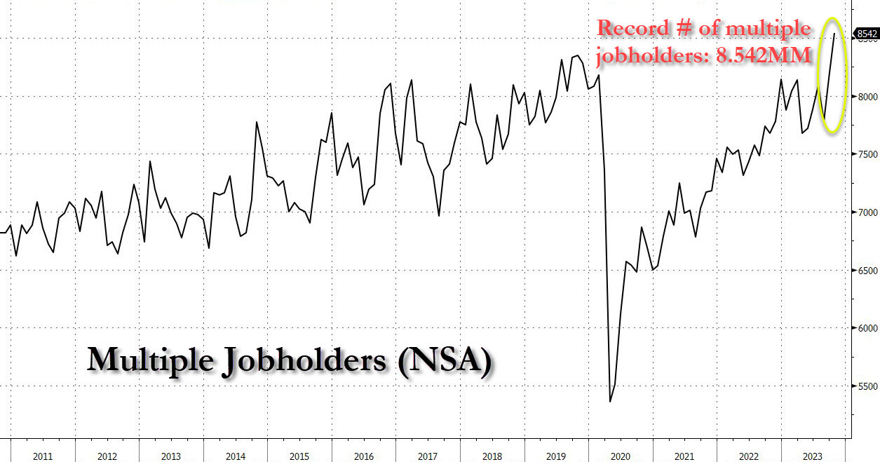 Number of people working multiple jobs just hit a record high.