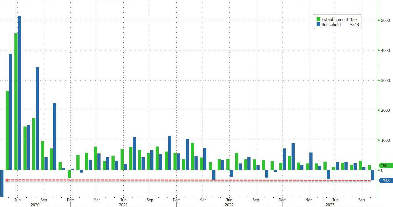 Household survey more accurate and less manipulated than official data shows jobs fell 348,000, largest drop since Covid lockdown.