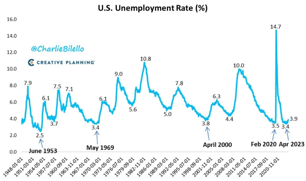 US unemployment rate rises to 3.9% in October, highest since January 2022. April's 3.4% was the lowest since 1969.