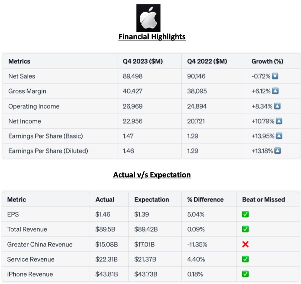 Apple's Q4 FY2023 results beat analyst expectations, but 'bitten apple' stock still fell in after-hours trading.