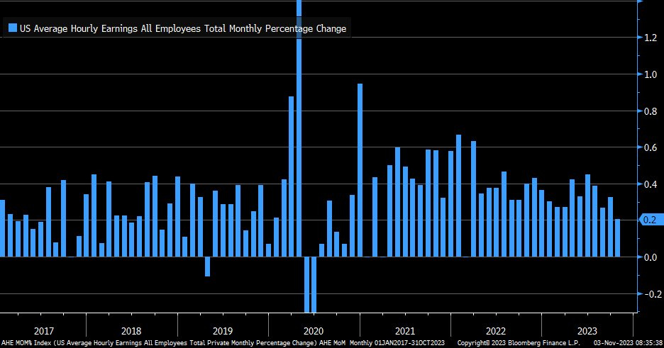 Average hourly earnings: +0.2% from previous month, lower than expected +0.3%.