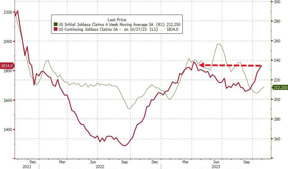 Continuing claims rise for the 6th straight week to 1.834 million people - highest since early April 2023.