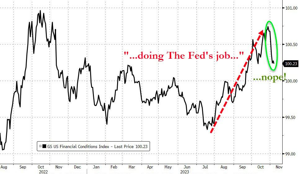 Good news is Goldman Sachs financial conditions index turns down, after Fed boasted that free markets automatically tightened financial conditions for them.
