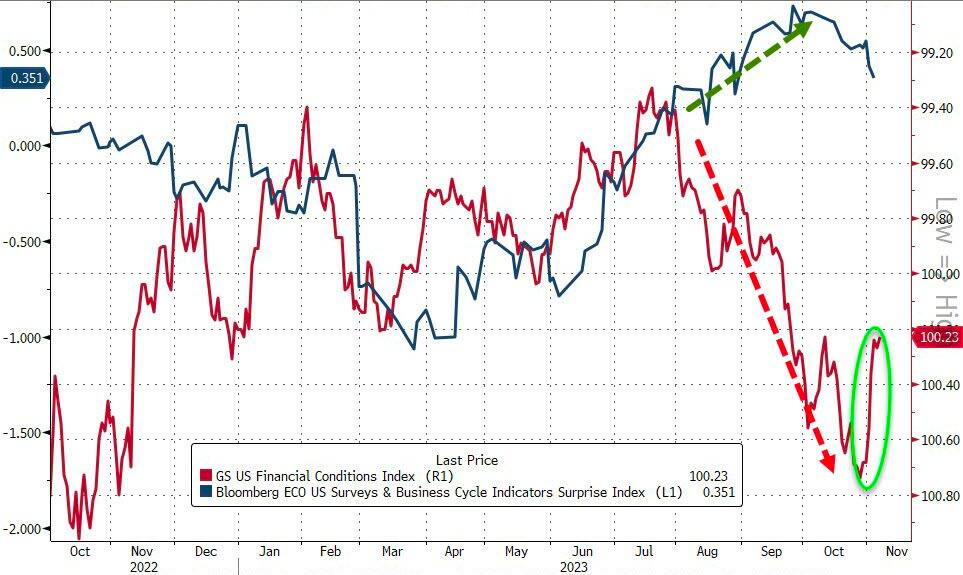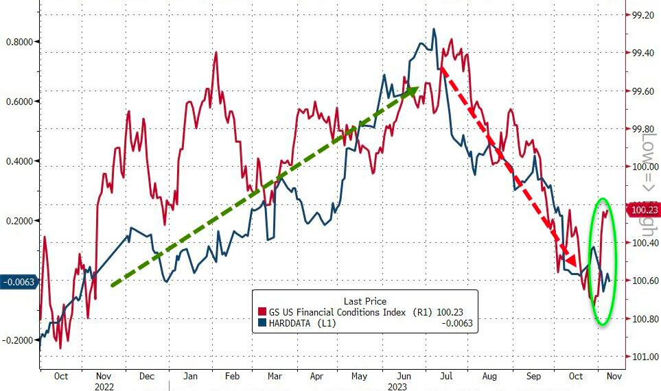 Interestingly, 'hard' data (official economic data) has fallen along with looser financial conditions...