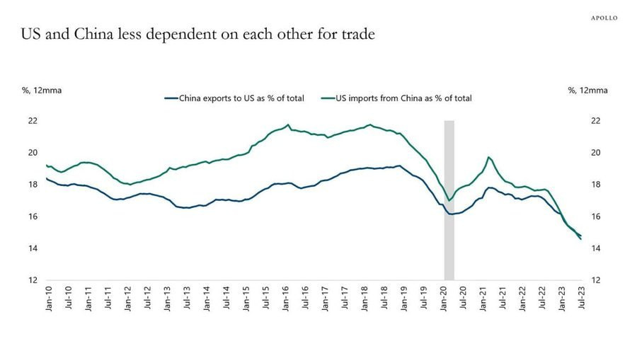 Since the Fed began raising rates, job growth has slowed significantly. According to Apollo, job growth will slow even further in the next 6 months.