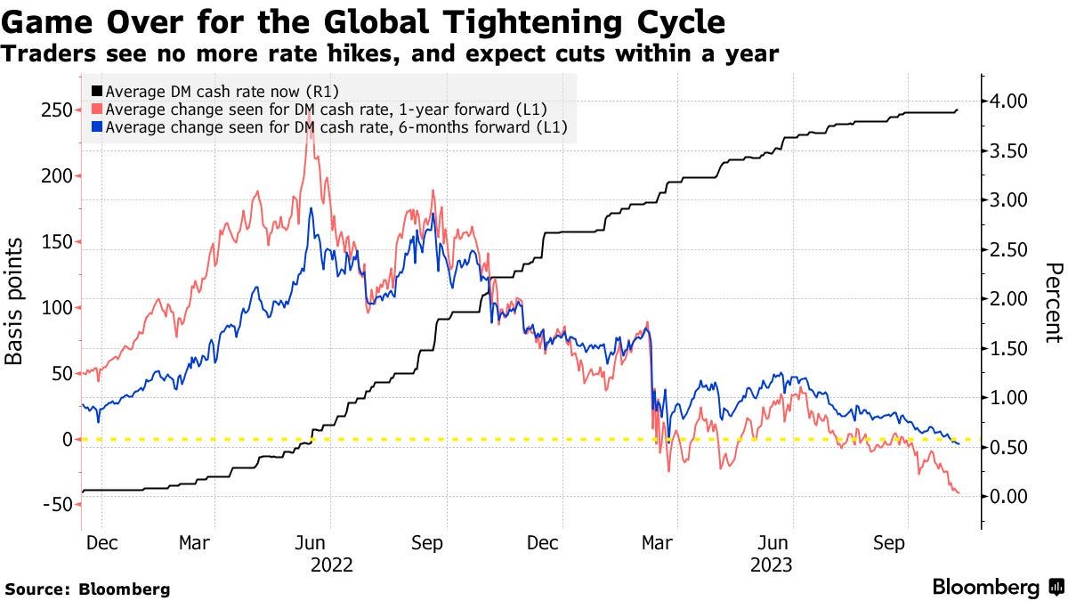 According to Bloomberg: swaps contracts signal average rates in developed economies will stabilize in next 6 months, and fall -50 bps in 1 year.