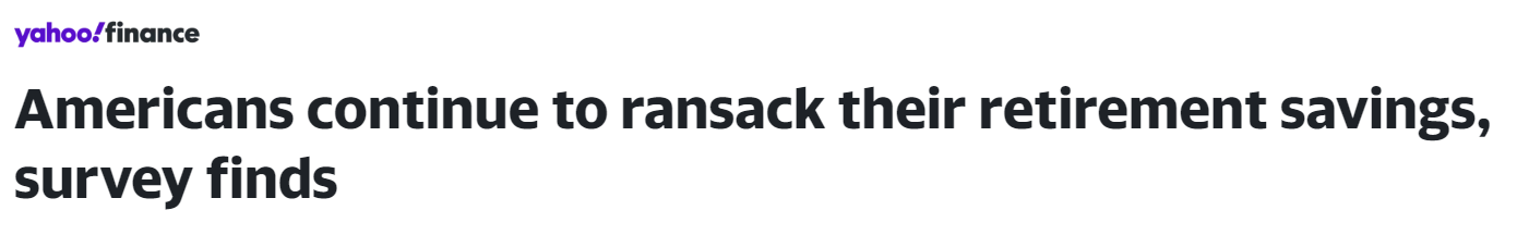 Number of people withdrawing emergency funds from 401(k) accounts increases +13% compared to previous quarter.