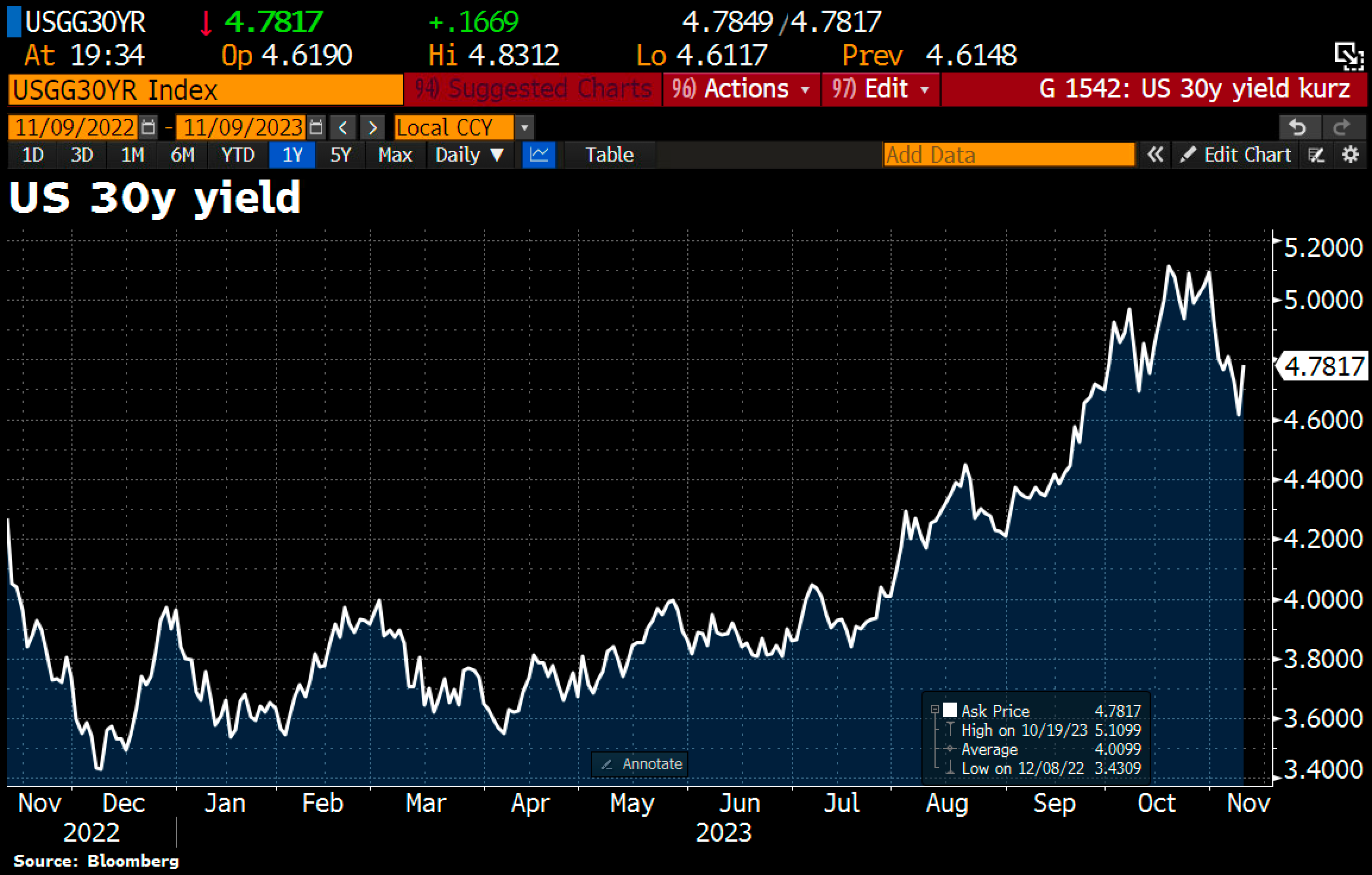 Long-term bond yields hit highest in 16 years in October, main factor contributing to increased public debt stress and fiscal budget deficit.