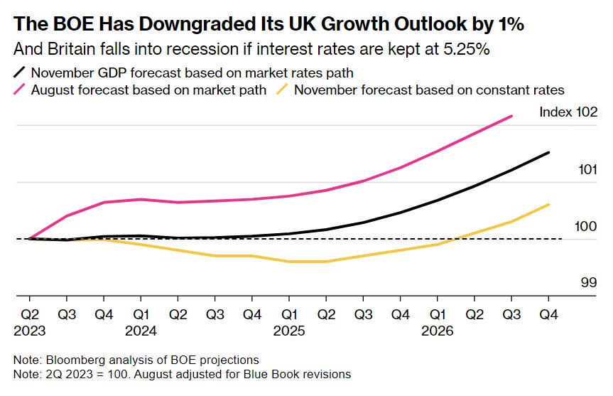GDP forecast to drop 0.1% in three months to September. BOE expects unemployment rate to rise from 4.3% to 5.1% by 2026.