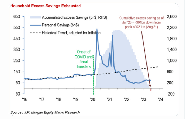 Previously, excess savings rate after inflation adjustment has gradually depleted.