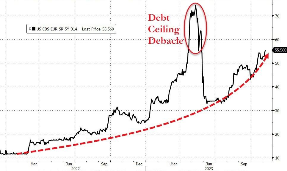 Value of CDS contracts increased about +60% since June, raising concerns of a recurring debt ceiling crisis.