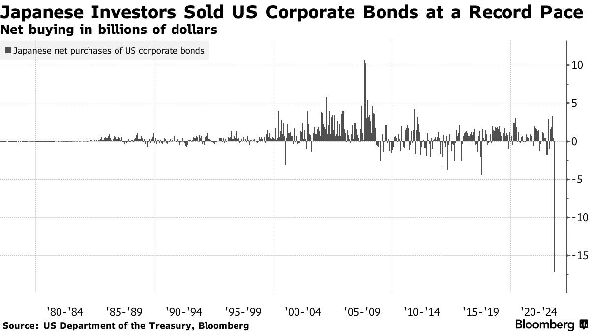 Japanese investors are dumping US corporate bonds at the fastest rate in history.