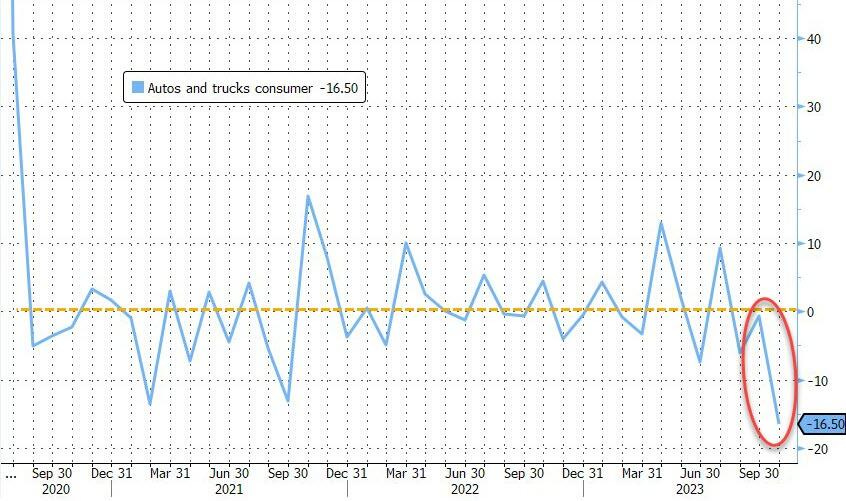 This overall decline mainly came from the auto manufacturing sector (-10% ) due to prolonged strikes.