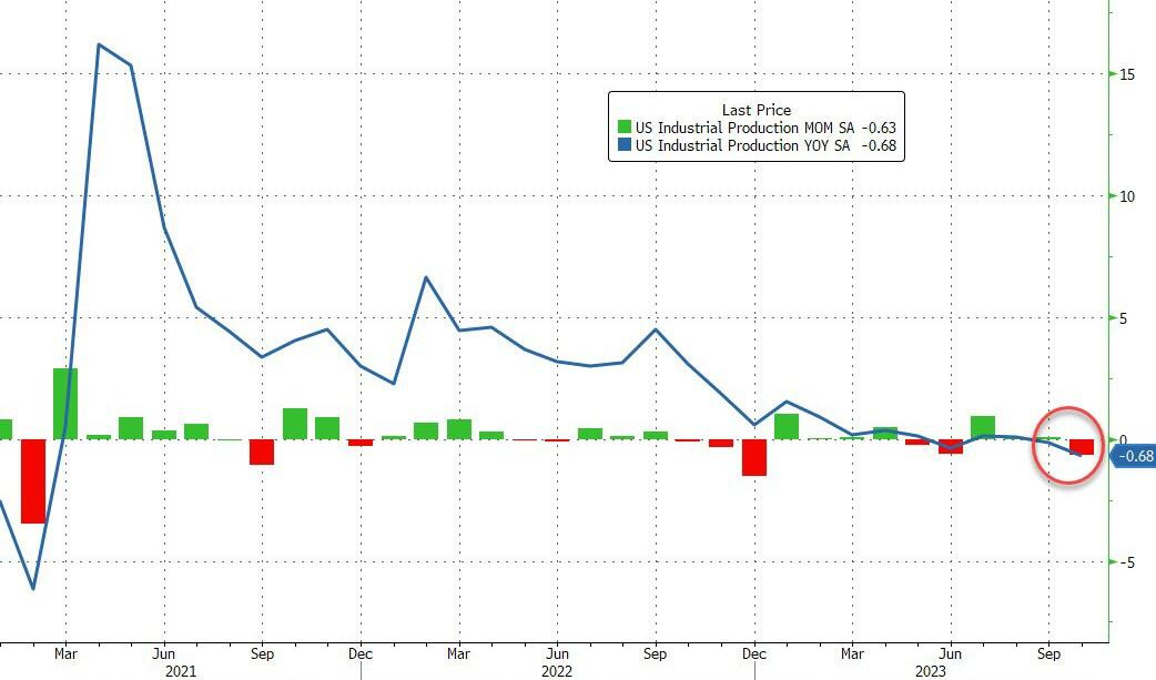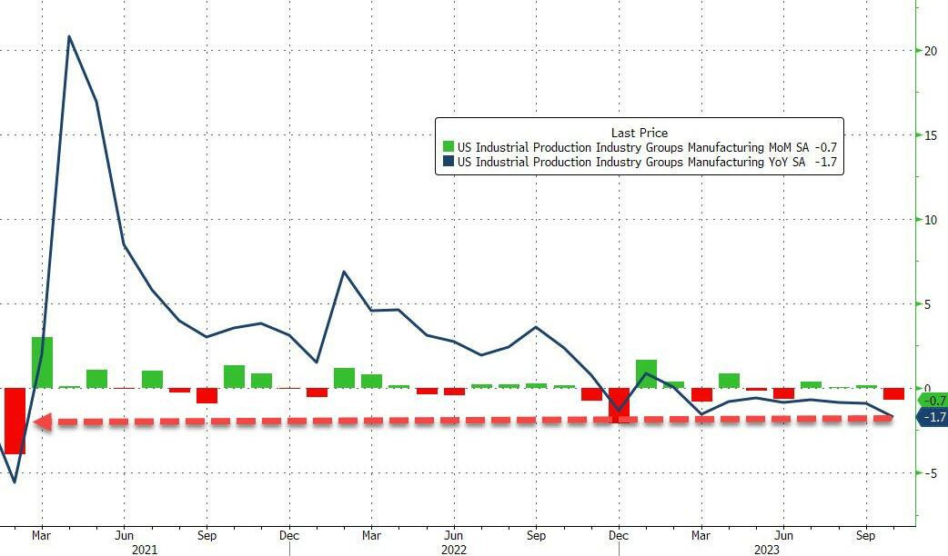Manufacturing Production output also fell sharply -0.7% MoM, the largest decline since March.