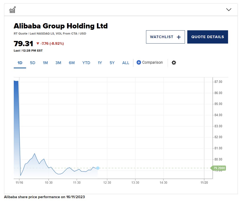 Alibaba ER: Stock slides due to US AI chip export restrictions