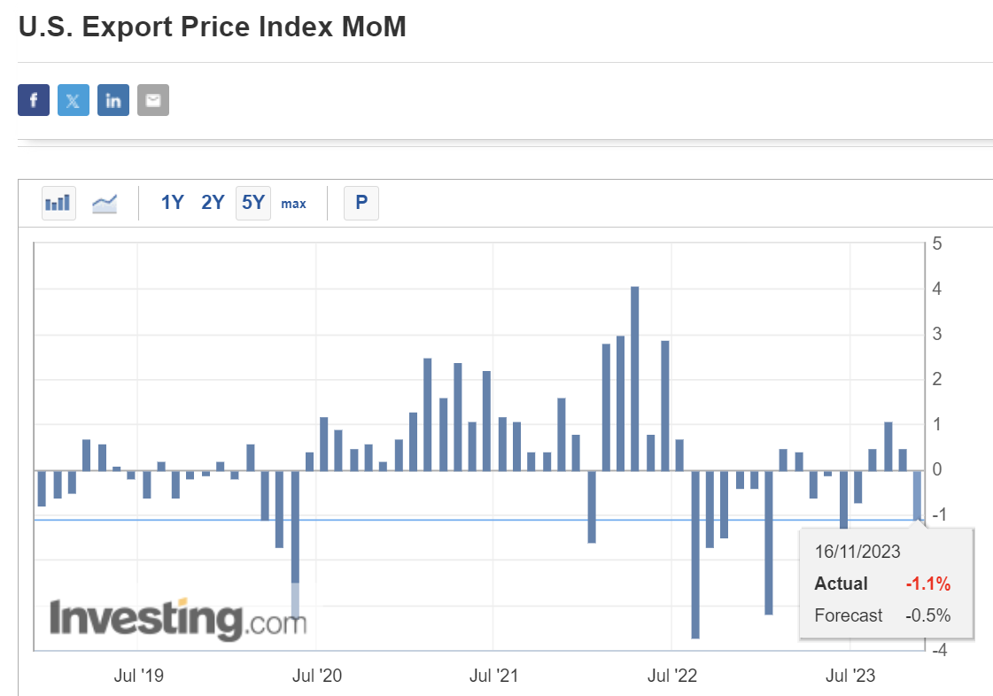 Export price index fell -1.1% MoM, (more than expected -0.5%).