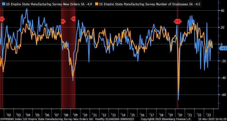 Empire manufacturing index data also reflects the same, with new orders and employment indices both declining in regional manufacturing activity.