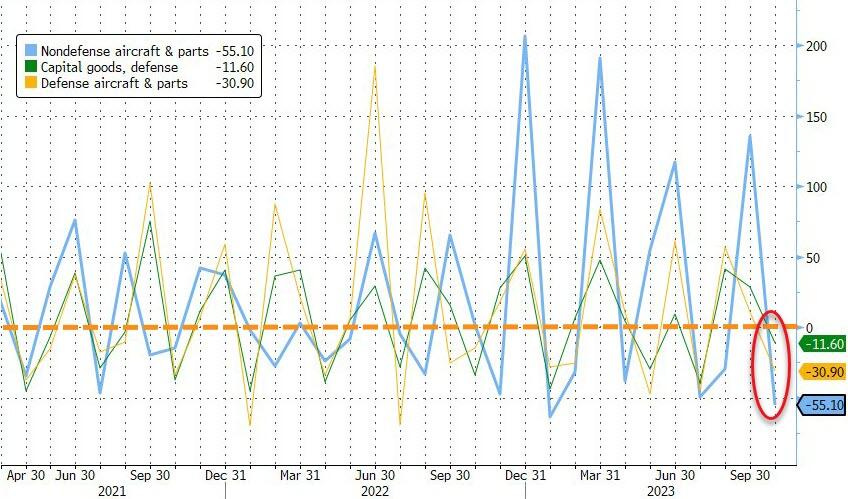 All defense orders from military and non-military aircraft (sharpest drop -55.1% MoM) and core orders all record sharp declines.