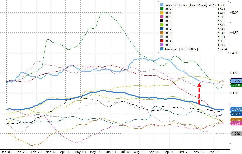 Gasoline prices have fallen sharply from summer highs, but still 21% above holiday week average.