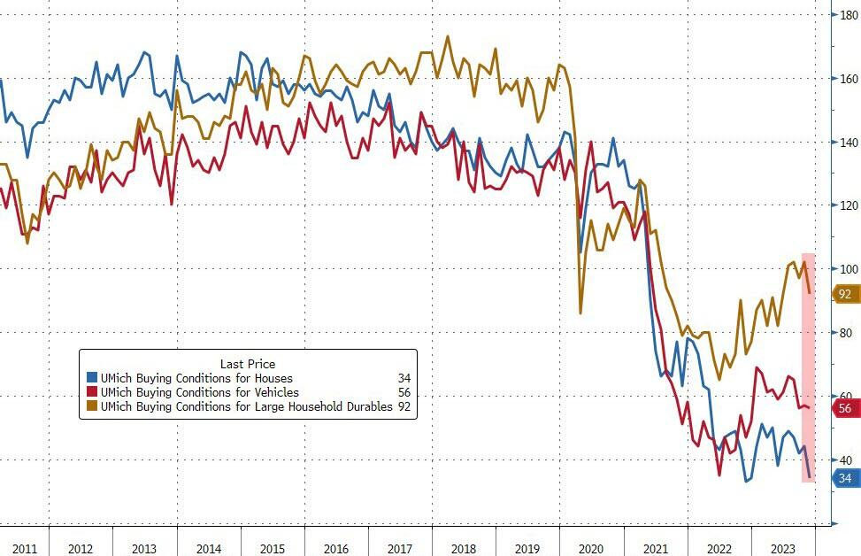 Consumer buying conditions weakened across all areas, especially for household durable goods.