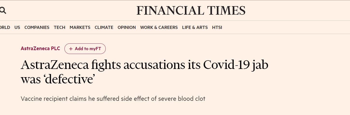 AstraZeneca denies allegations related to Covid-19 vaccine after a vaccine user sues for compensation for severe side effects.
