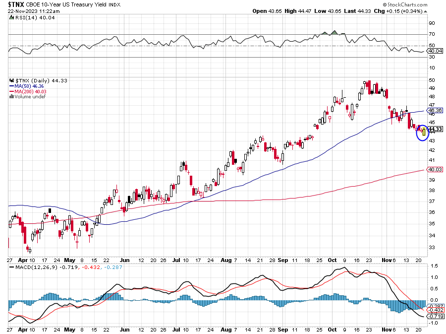 10Y T-bond yield rises again (after repeated declines and hitting 2-month low last week).