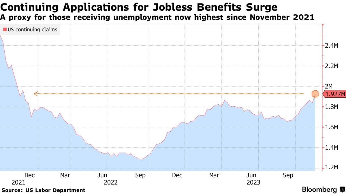Continuing jobless claims rise to 1.93 million - highest since 2021