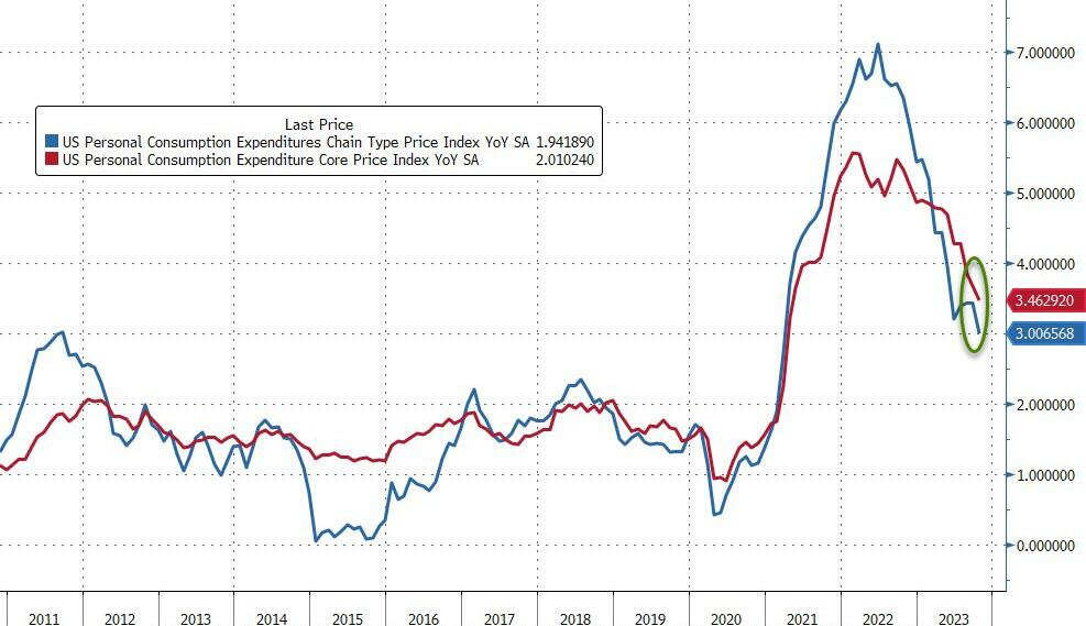 Core PCE and headline PCE recorded at +3.5% YoY and +3.00% YoY, lower than expected.