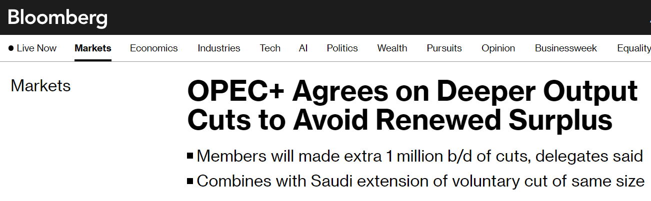 OPEC+ decides to cut oil production by an additional -1 million barrels/day.