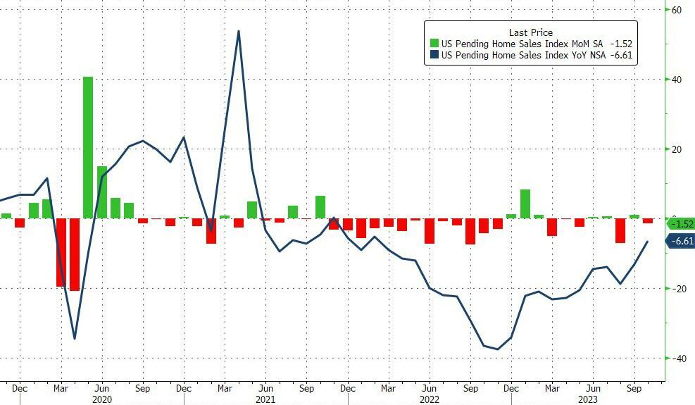 After a slight recovery last month, pending home sales (Pending Home Sales) in October fell -1.5% MoM, -6.6% YoY (13 consecutive negative months).