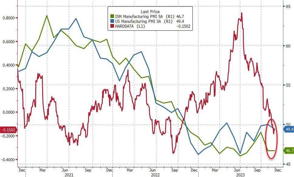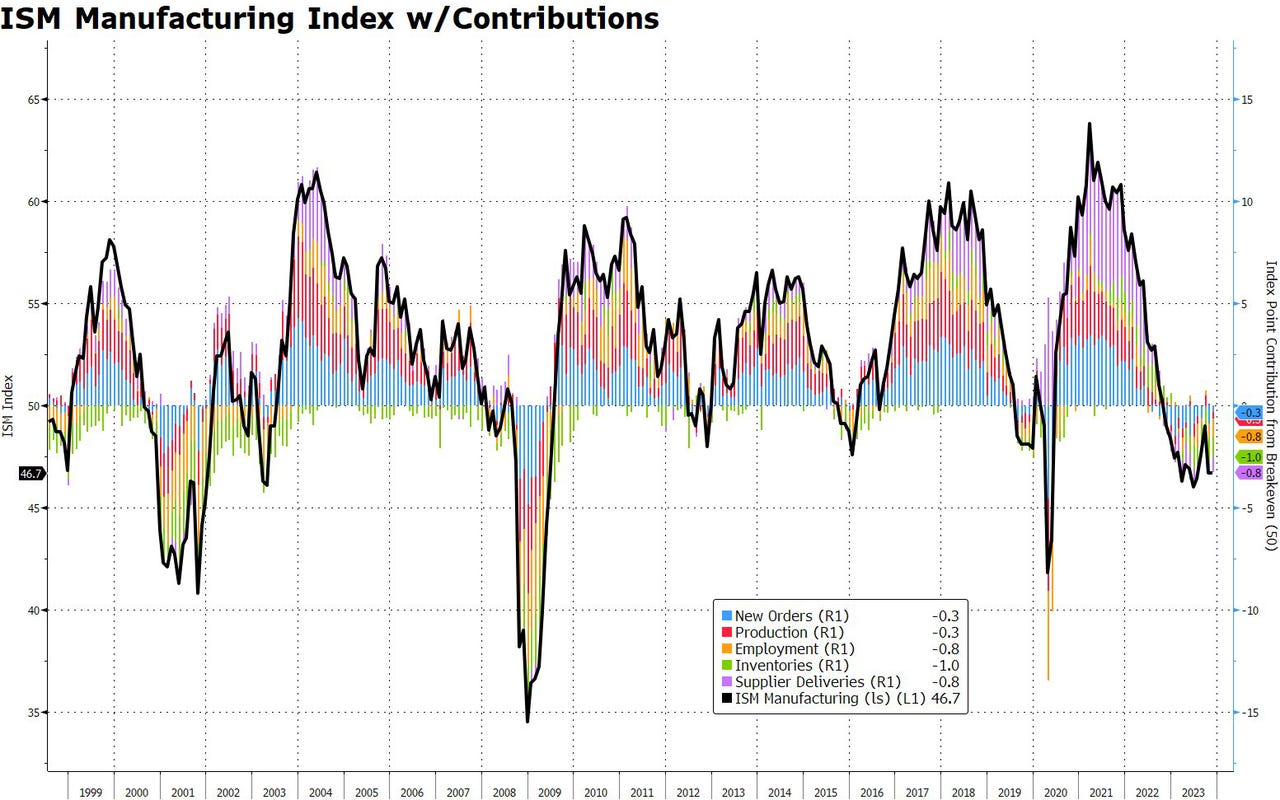 Contrary to expectations of increase, ISM October manufacturing PMI at 46.7, below expected 47.8.