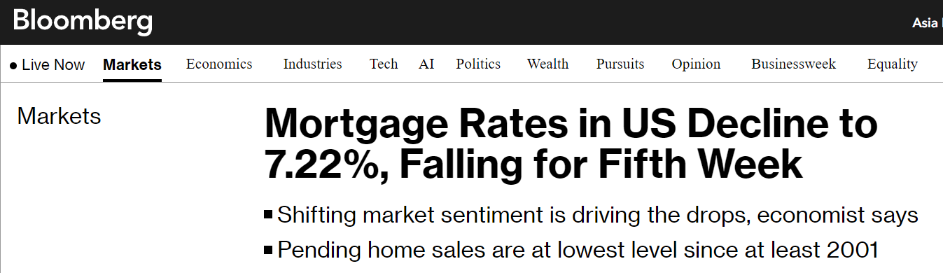 Latest mortgage rates fall for 5 straight weeks to 7.22%.
