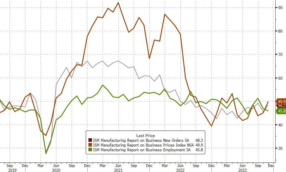 Prices index (at 49.9) higher than expected but still below 50 threshold → The manufacturing sector is still contracting overall.