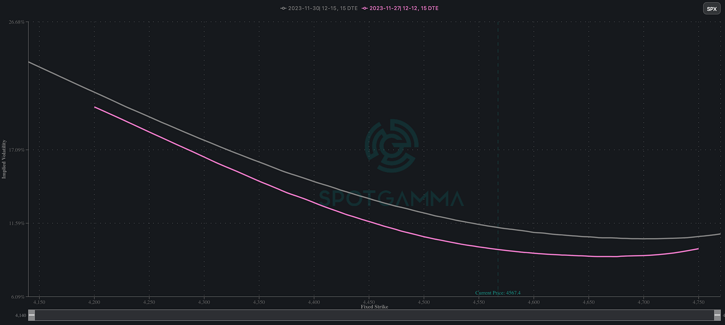 SPX is likely to pullback here and unable to break above 4600 level until demand for calls above 4600 appears