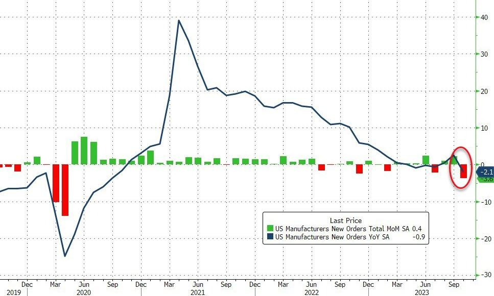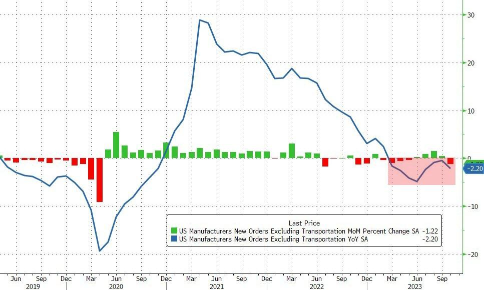 Core factory orders (excluding transportation services orders) also continue 8-month decline streak, down to -2.2% YoY.