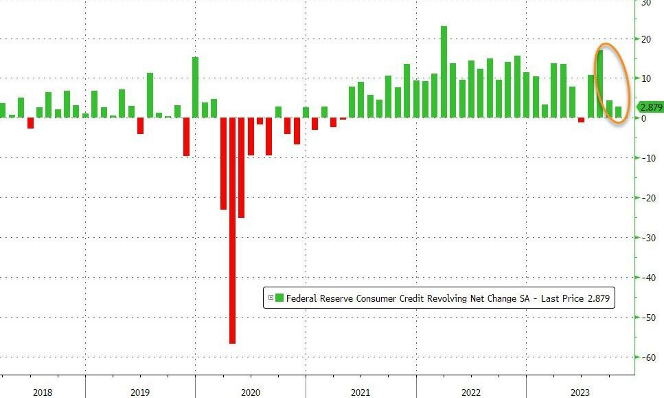 Compared to the usual monthly increase of about +20-30 billion USD, consumer credit in October slowed to just +5.13 billion USD.