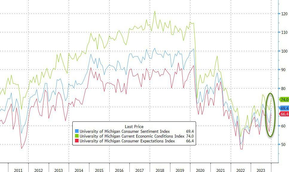 Consumer sentiment index also rose to 69.4 - highest in 4 months.
