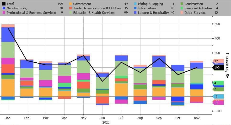 However, the November nonfarm payrolls (just released) increased +199,000 in November (higher than forecast +183,000)…