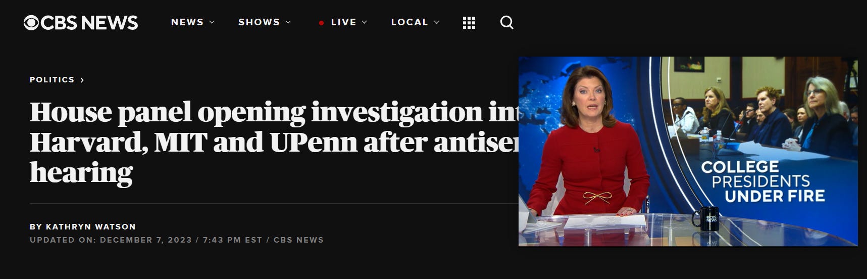 US House launches investigation into Harvard, MIT and UPenn after anti-Semitism hearing, especially after controversial responses from the presidents of these prestigious universities.