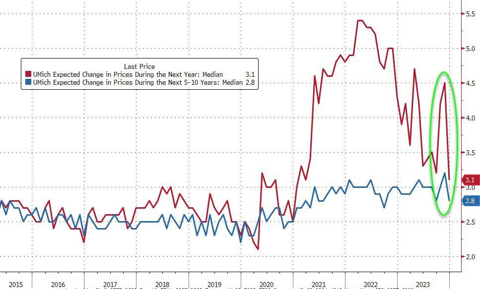 UMich short-term (1-year) inflation expectations fell to 3.1% for December 2023 (lowest since March 2021).