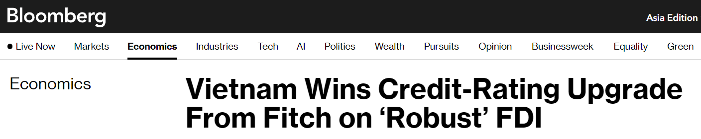 Fitch Ratings upgrades Vietnam's credit rating to BB+.