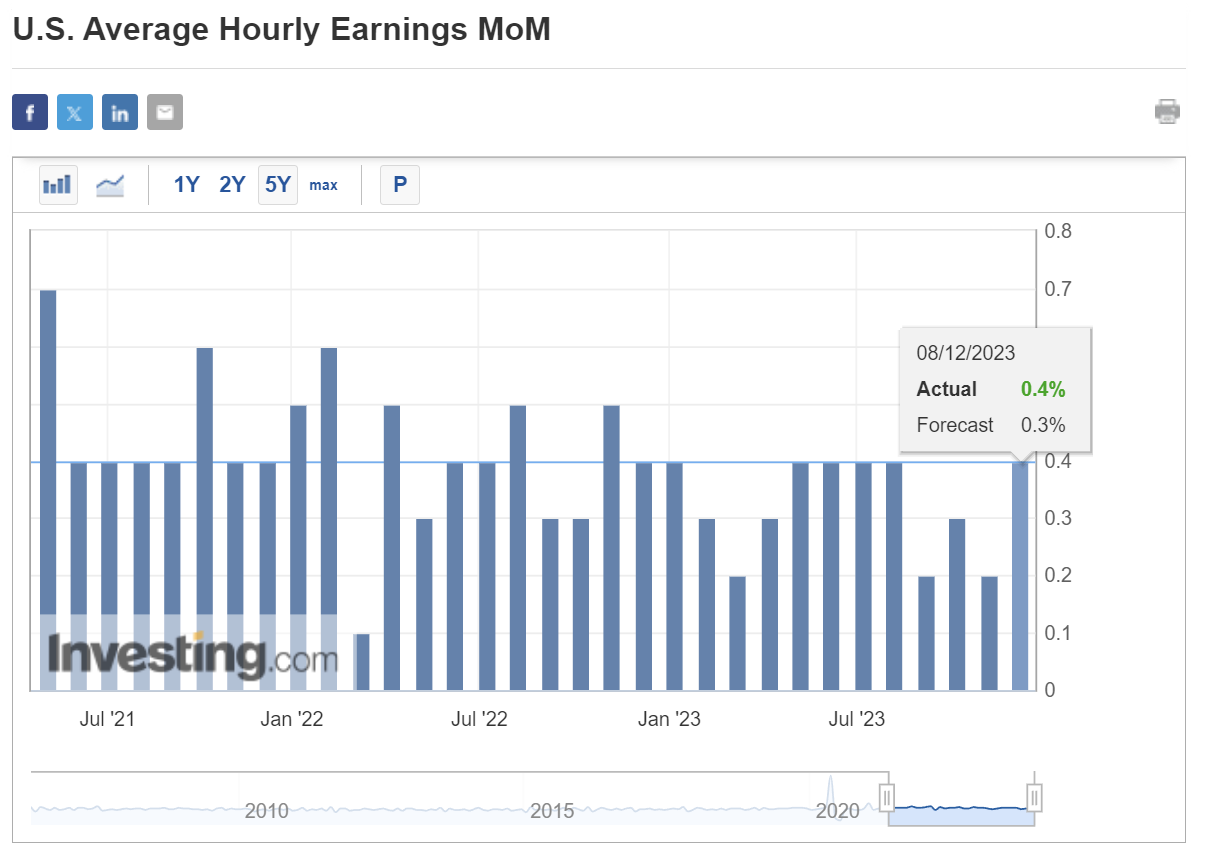 Hourly earnings growth also rose +0.4% MoM, higher than forecast (+0.3%) and previous month's figure (+0.2%).