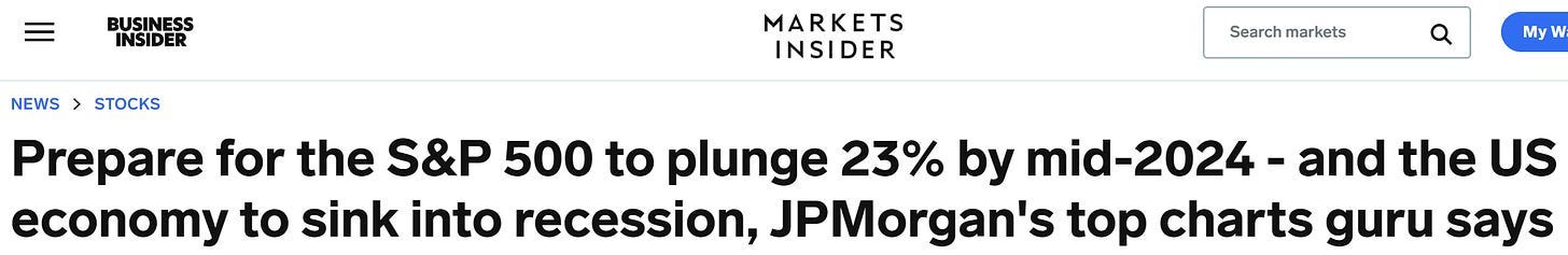 Jason Hunter (JPMorgan) forecasts S&P 500 could fall to 3,500 by mid-2024. Currently S&P 500 is around 4,600.