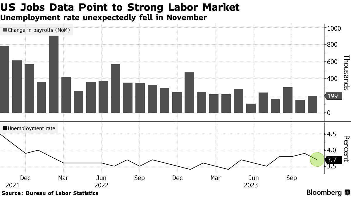 …and the unemployment rate accordingly fell from 3.9% to 3.7%.
