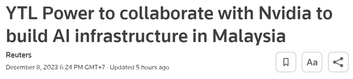 Nvidia Corp is in discussions with Malaysian conglomerate YTL about collaborating on data centers, mainly focused on cloud infrastructure.
