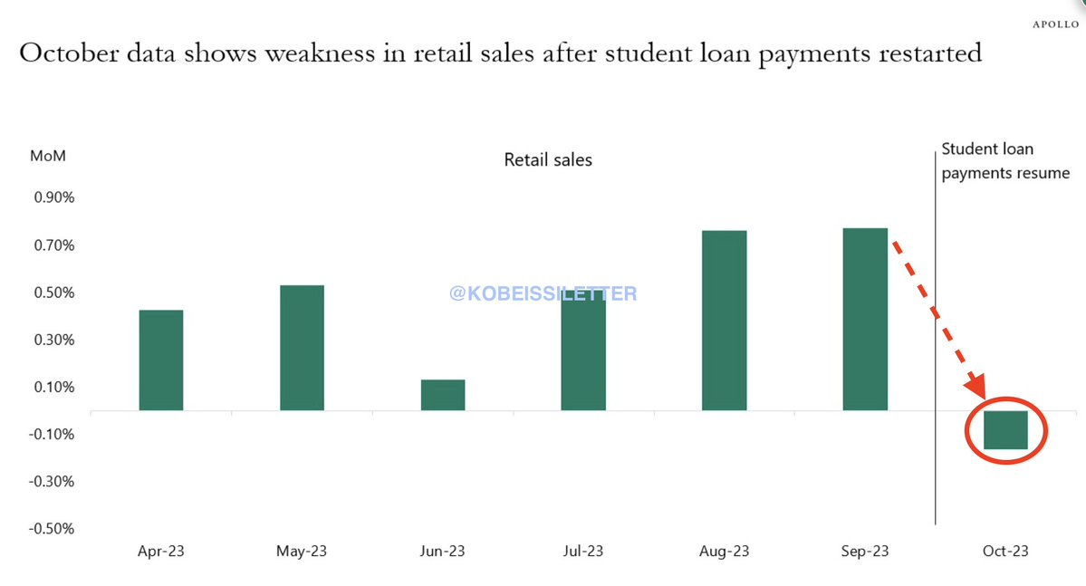 Retail sales also declined (negative growth) for the first time since March 2023, as student debt repayments resume.