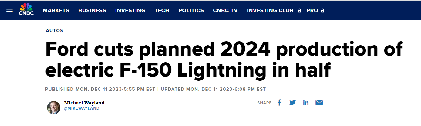 Ford cuts F-150 Lightning electric production plan in half for 2024