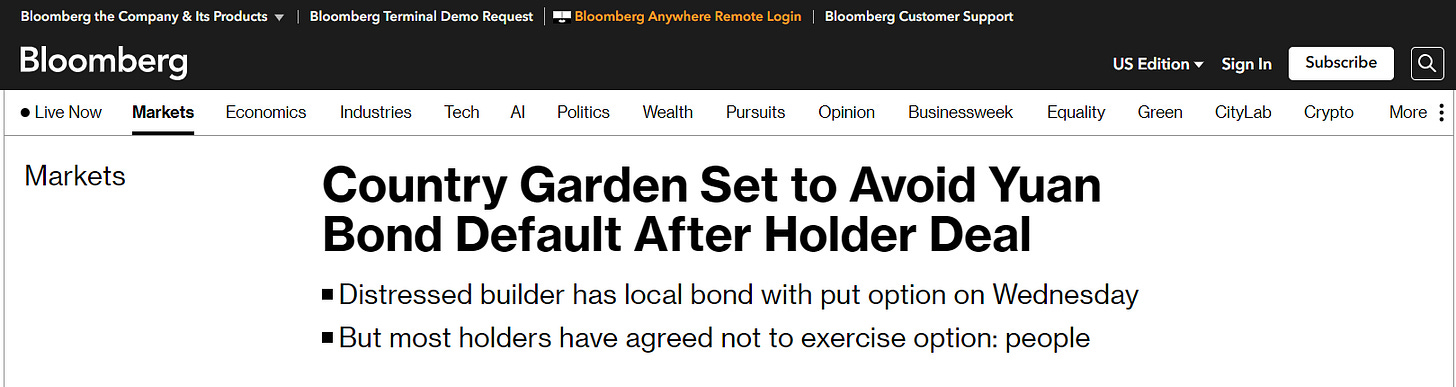 Country Garden may avoid first default on CNY bonds after deal with bondholders.
