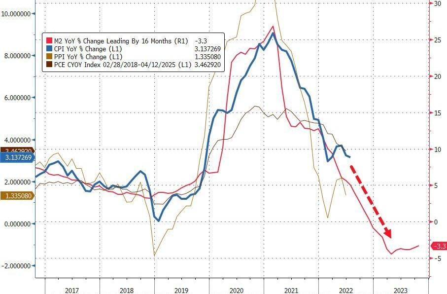 It can be seen that M2 money supply and CPI are correlated → CPI is likely to continue declining following M2.